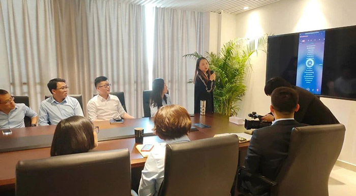 伴隨著現場緩緩奏起的輕音樂,主持人Sandy在進行自我介紹和現場預熱后,以抽簽形式開始了歌曲競唱環節,國際市場部的Sabrina自告奮勇獻唱曲,熱情演唱了經典英文歌曲——《 Trouble is a friend 》,贏得現場陣陣掌聲!