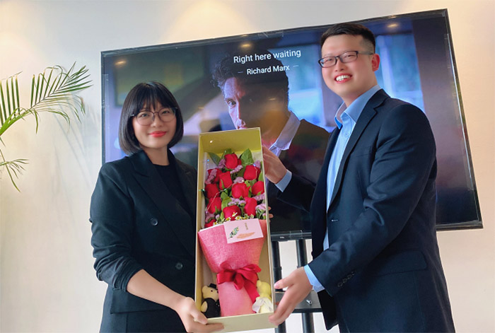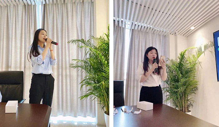 接著,來自國內市場部的Victoria Wang深情地演唱了韓語版的《l Believe 》。每個人沉浸在她凄婉動人的歌聲中的同時,也驚嘆于她對韓語的準確發音,演唱完畢,現場爆發熱烈的掌聲,大家由衷地為她豎起了大拇指!