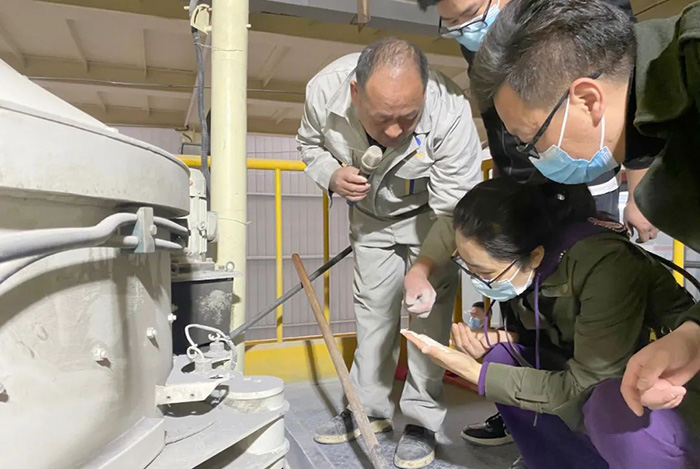 在不定形耐火材料生產基地,生產部程廠長帶領大家參觀了不定形耐火材料生產車間,深入淺出地為新員工們講解了全自動化不定形耐火材料生產設備的自控操作、成品磨制、出倉以及包裝的技術操作等。在喧囂的機械聲中,程廠長就不定形耐火澆注料與可塑料的原料采購、碎石分級、配比分裝等生產流程進行了耐心細致的介紹,讓員工們見證了忙碌的生產現場。大家邊聽講解邊記筆記,在進一步了解生產制造過程的同時,更感受著集團苛求品質與細節的優良作風。