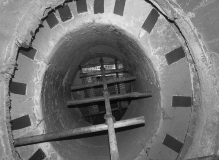 (3)原耐火材料由環(huán)形托架支撐,環(huán)形托架熱膨脹時(shí)受內(nèi)筒拘束向下變形,耐火材料得不到有效支撐,zui終脫落。